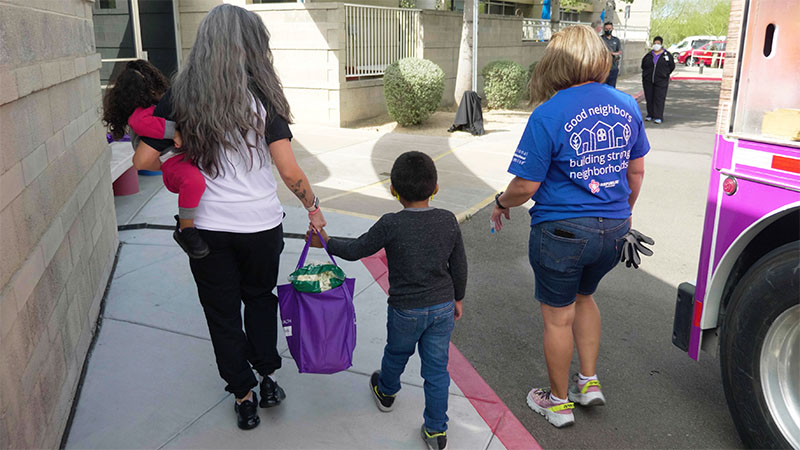 Working with local schools, provides weekly bags of nutritious, kid-friendly food for school-age children to ensure they have enough to eat over the weekend.
