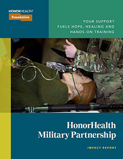 And it all starts here at home. HonorHealth is the only community-based hospital in the country to provide this level of medical training to military nurses and medics as well as local first responders. And thanks to the generosity of donors like you, this life-saving training allows these heroes to maintain their certifications and stay on top of evolving treatment protocols — all provided at no charge as a service to our community and our country.