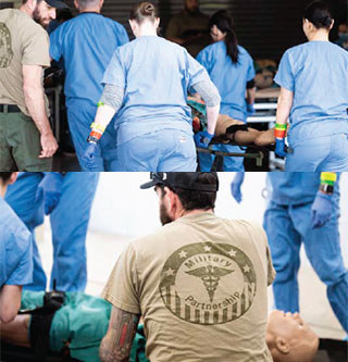 Participants learn in a realistic, yet threat-free environment, and work with highly experienced physicians and former military members. They use advanced patient simulators with life-like functions, including heart beats, breathing and the ability to talk, respond to treatments and even “bleed” from mock injuries.
