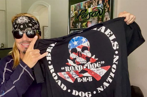 “After I got to know Bret after several serious medical events, including a life-threatening brain hemorrhage, we decided on this friendly wager for the first football game of the season,” recalled Stewart. “My team lost, so I had to wear a Bret Michaels t-shirt for 2 weeks straight. I decided to have some fun with it, as working in healthcare at this time is unprecedented and difficult. The pandemic has definitely taken a toll on caregivers. This shirt and I have traveled between work, home, and the California beach. I also committed to sending updated pictures of the journey to be posted on BretMichaels.com with his socials, and the story caught on. I admit that wearing this shirt initiated several enjoyable conversations with strangers – making a friendly wager even more fun!”