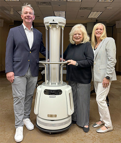 Infection prevention is paramount, and the germ-zapping robot (pictured right) uses high intensity UV-C light to inactivate harmful pathogens, such as C. diff, MRSA, C. auris, VRE and other multidrug-resistant organisms. These programmable robots offer 360-degree autonomous cleaning.