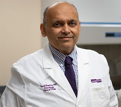 Sunil Sharma, MD, MBA (pictured left), known as one of the nation’s leading experts in creating anti-cancer drugs, was named director of the center.