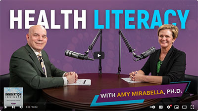 Learn more about what HonorHealth is doing to build awareness of and commitment to health literacy. Watch this Innovation Insights video, hosted by Dr. Michael Gordon. He introduces Amy Mirabella, PhD, Director of Clinical Research at HonorHealth Research Institute, who shares her extensive knowledge and passion for health literacy and how it impacts patient outcomes and community health.