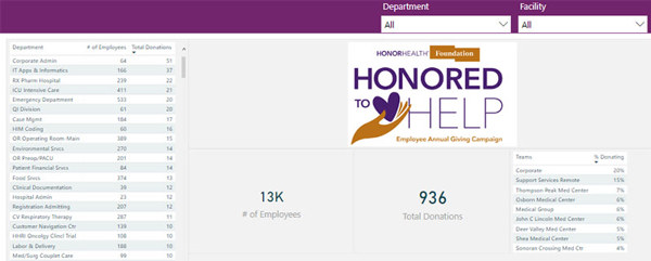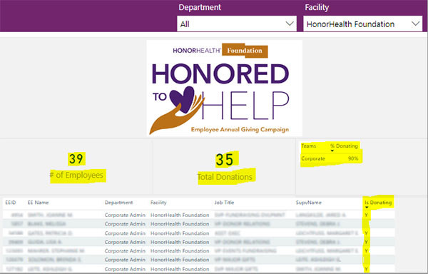 - Go to Employee Giving - Power BI to view your department’s progress.